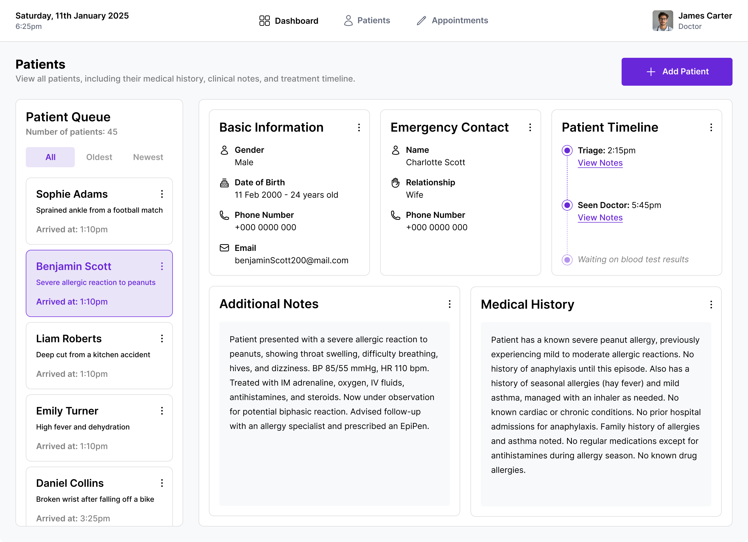 MedLife is a straightforward, intuitive tool designed to help medical staff track patients in A&E, manage appointments, and monitor key metrics from a single dashboard. By simplifying complex processes, it ensures that vital information is always accessible, helping staff make quick, informed decisions.